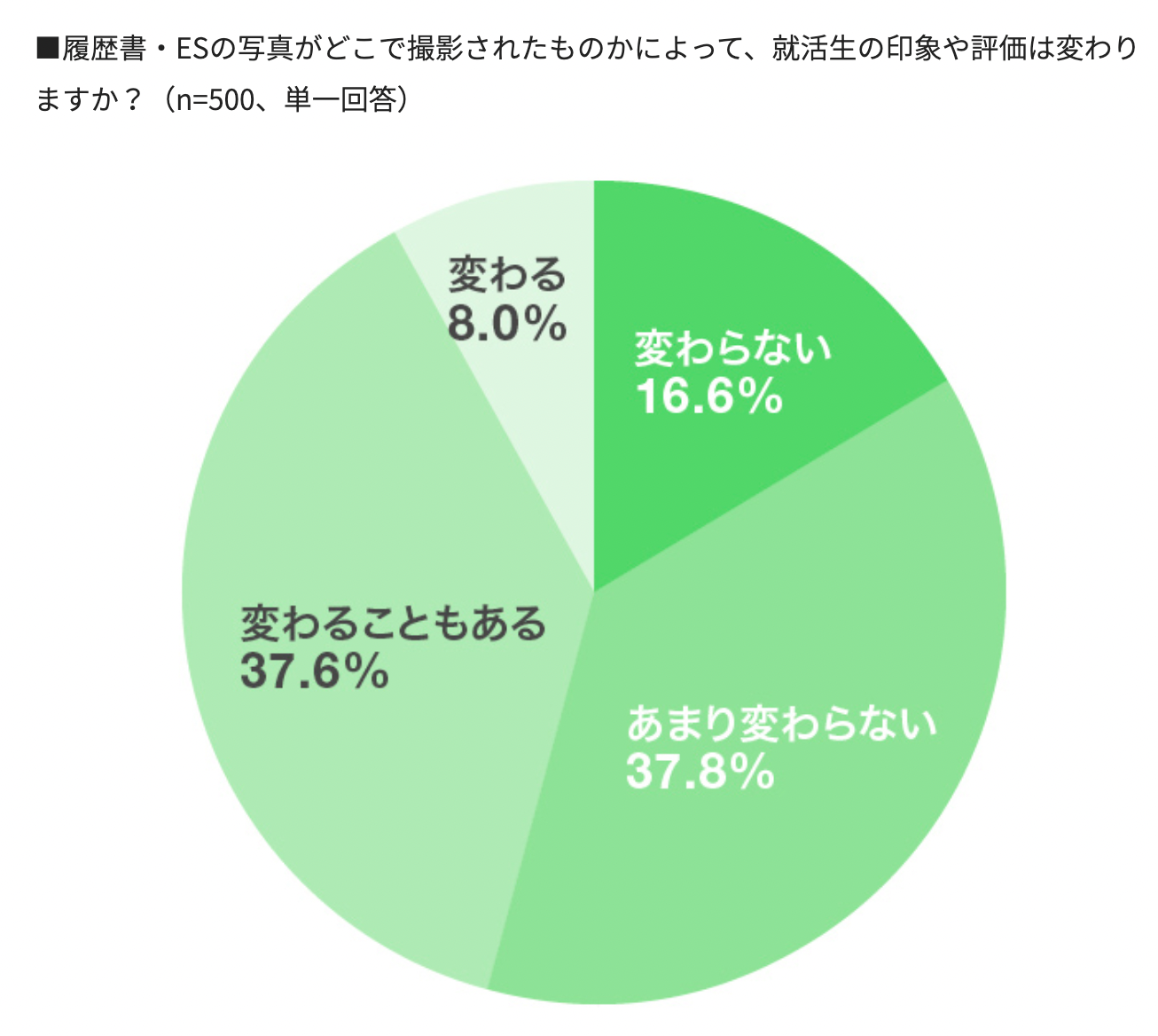 下のグラフで「撮影場所によって就活生の印象や評価が変わる」と答えた人事の中には、「スマートフォンでの撮影は誠実さが伝わらない」といった声がありました。